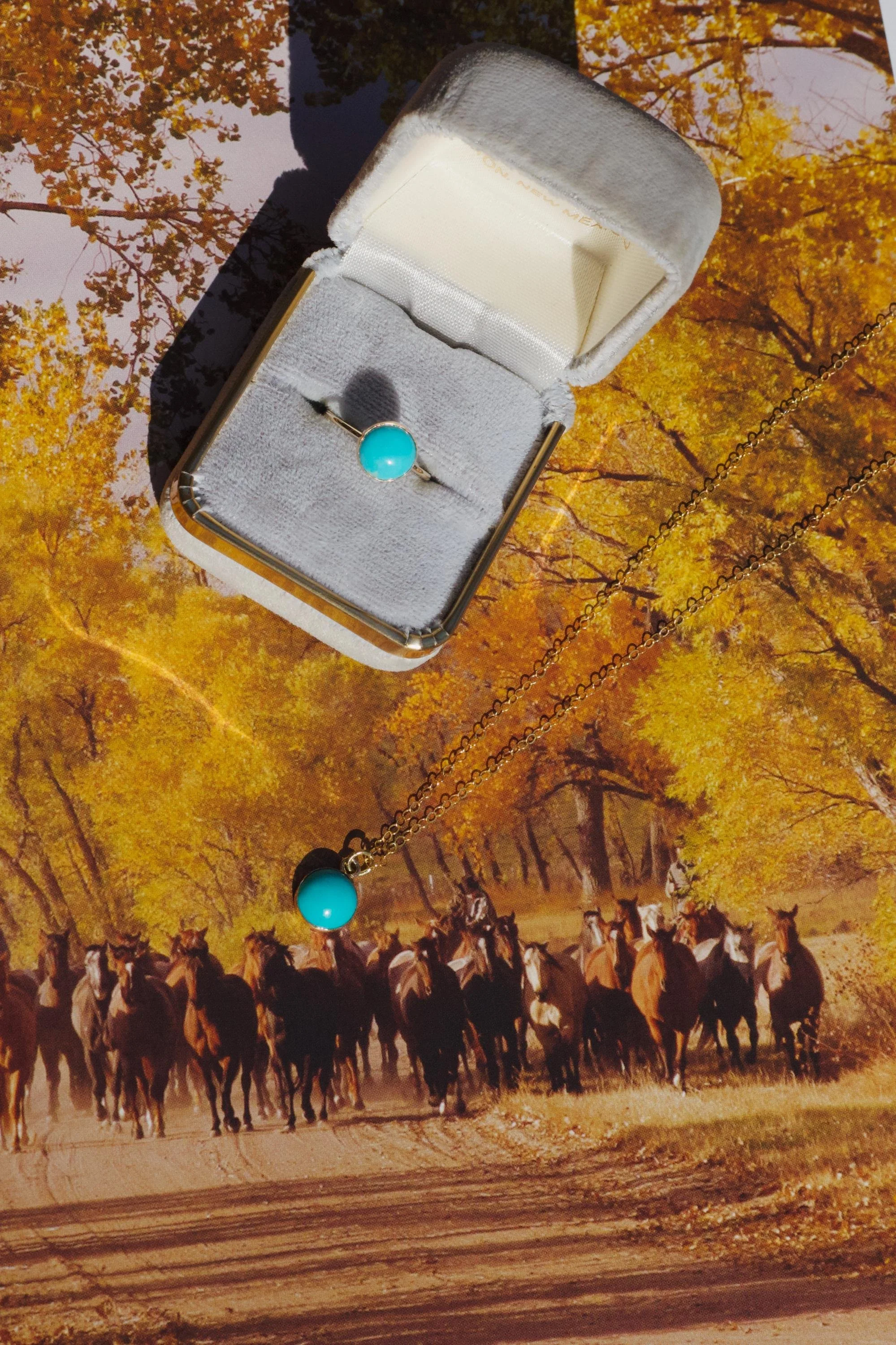 The pop of vivid color from the authentic Mexican Turquoise is instantly eye-catching. This is a versatile, high-quality piece that captures a natural, earthy elegance with a modern, refined look. It's built to be durable and tarnish-resistant, ensuring you can enjoy the luxurious, warm glow of gold every single day.