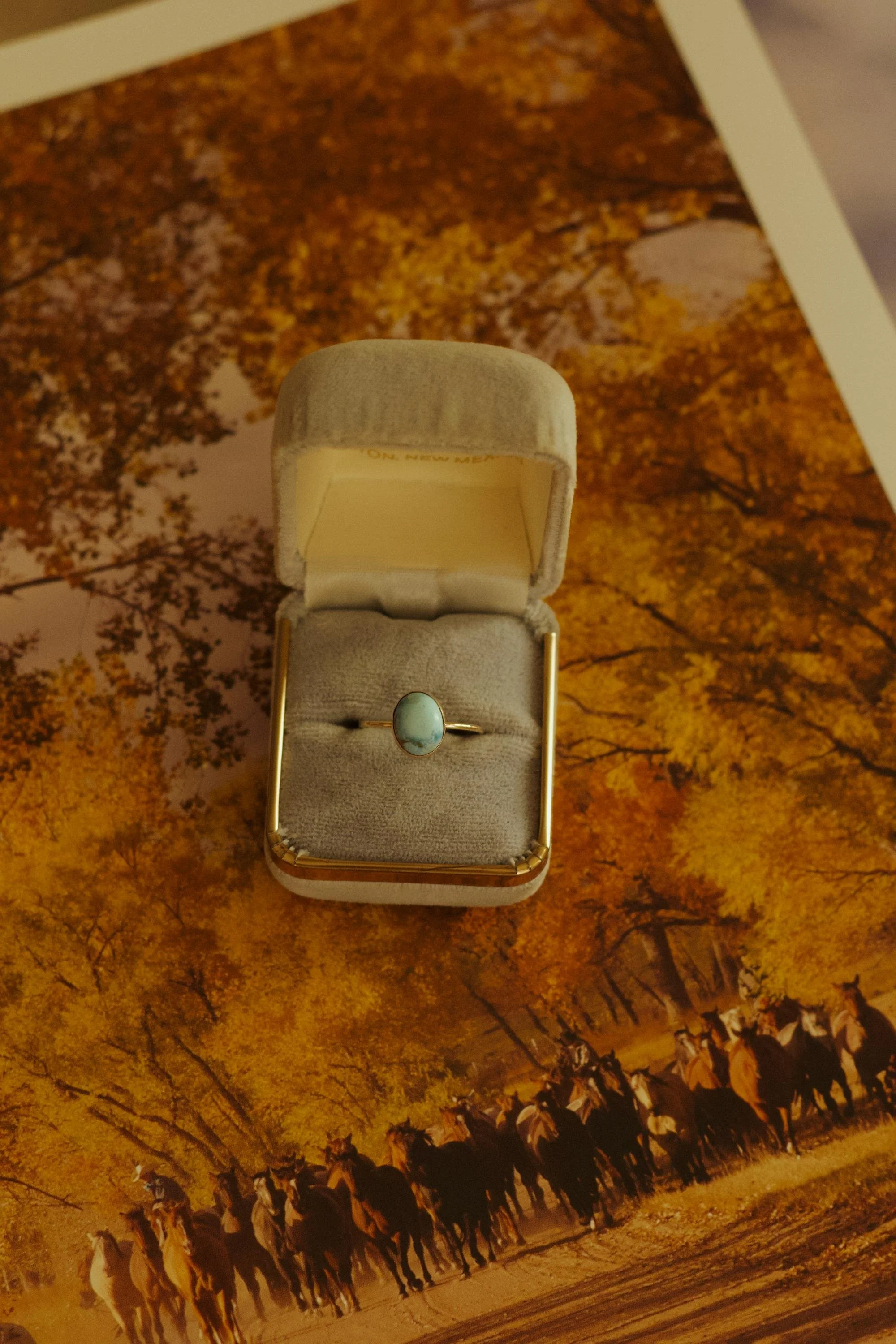 Golden Hills turquoise is a rare and highly sought-after variety from Kazakhstan, treasured for its pastel hue and delicate marbling. Set in gold fill, it brings a touch of desert sunlight and western charm to any jewelry collection.