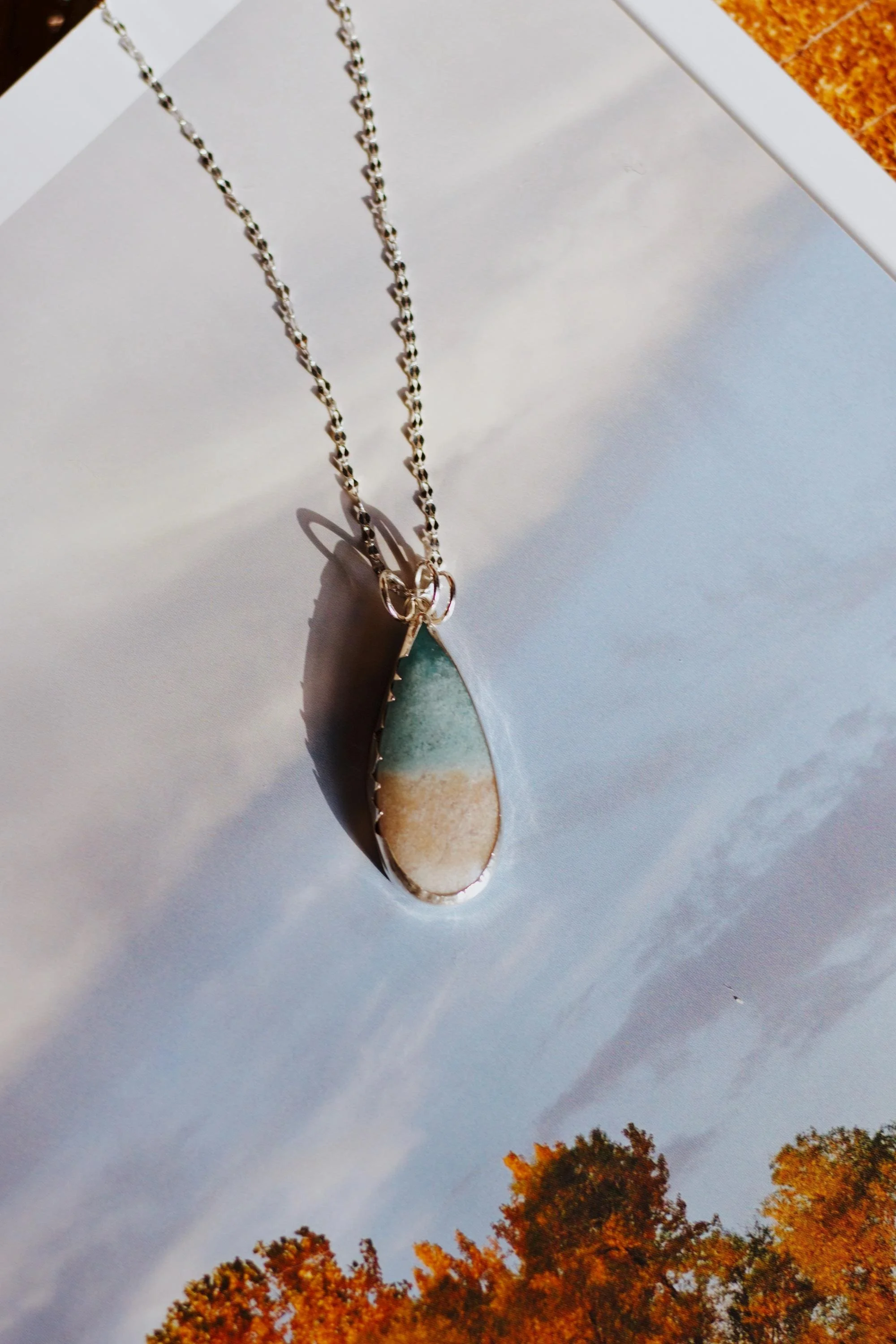 The teardrop shape keeps the design sleek and wearable, while the jagged bezel adds a striking, modern edge. Completely handcrafted in sterling silver, this pendant is truly one of a kind.